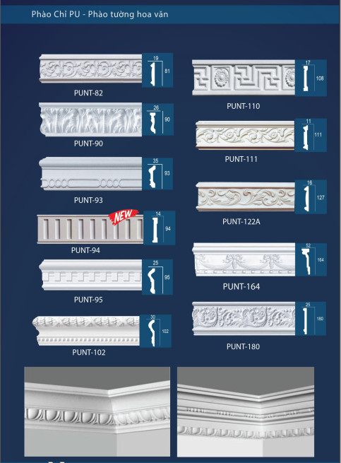 - Phào chỉ tường PU Bình Dương thường được sử dụng để trang trí nội thất và ngoại thất nhà cửa, tạo ra những đường nét sang trọng, đẹp mắt và đồng thời cũng có tác dụng che khuyết điểm và bảo vệ các khe nối giữa các tấm tường. Loại phào này có thể được sơn hoặc tẩm màu để phù hợp với màu sắc của tường và nội thất phòng.